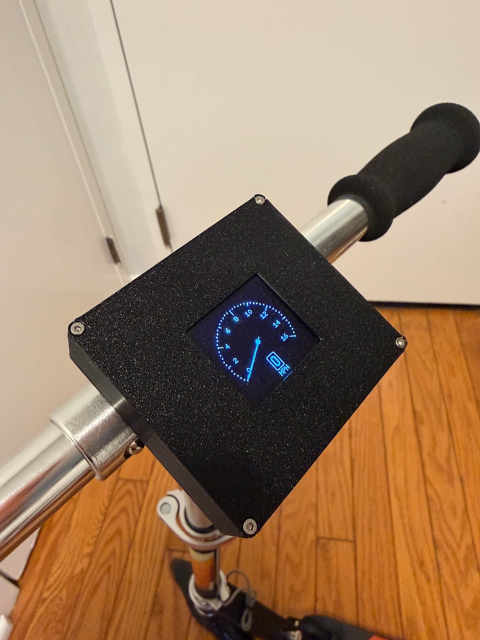 - Display: Shows analog speedometer on OLED with digital MPH readout
